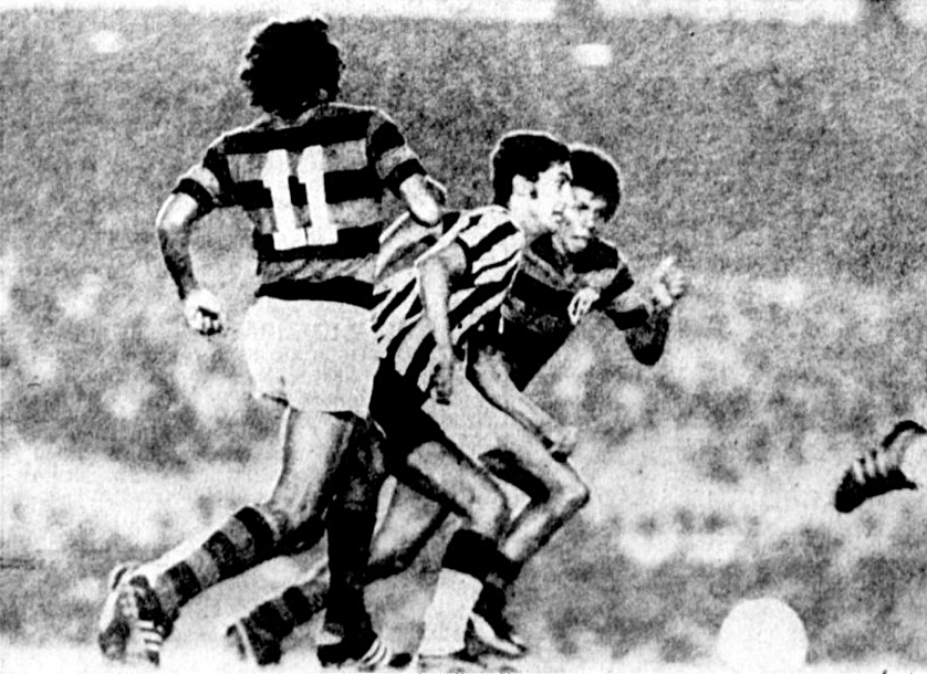 Cleber perde a jogada para Liminha, pelo Nacional 73.
